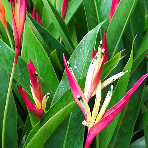 Heliconia Lady Di tumbuh dengan tinggi sekitar 1-3 meter, dengan daun yang panjang dan lebar. Bunganya muncul dari batang tumbuhan dan mekar dalam kelompok yang padat. Bunga heliconia memiliki bentuk yang menyerupai paruh burung dengan warna yang mencolok seperti merah, oranye, kuning, dan hijau.